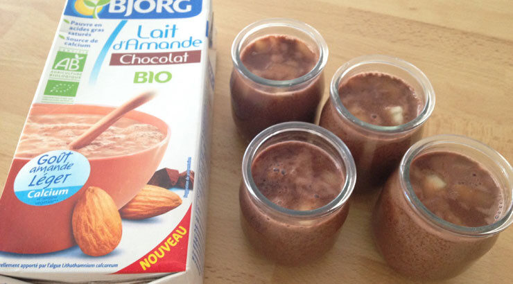 Le lait d’amande, j’en suis clairement pas fan. Mais quand j’ai vu qu’il existait du lait d’amande au chocolat, je me suis dit “pourquoi pas essayer”. Sauf que, je ne savais pas trop quoi faire avec cette brique de lait d’amande chocolaté. Et c’est en lisant le dos de la brique en question que j’ai vu cette recette, vraiment toute bête à réaliser, simplement qu’il fallait y penser ! Elle prend 5 minutes grand max et s’inspire très fortement de la [ez_link target=’_blank’ url_id=’21662′ ]panna cotta[/ez_link], petite recette que j’aime faire.