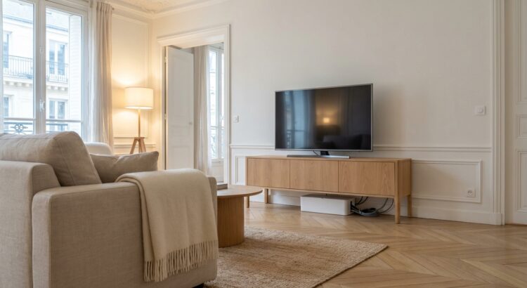 Dans beaucoup d’intérieurs, le coin TV est devenu le cœur électronique de la maison : téléviseur, box internet, console de jeux, barre de son, lampes, parfois même routeur et enceinte connectée. Les câbles s’accumulent au sol, formant un véritable plat de spaghettis qui attire la poussière. L’œil tombe dessus à chaque passage et le cerveau enregistre ce petit désordre comme une tâche à gérer, une chose de plus sur la liste mentale.
