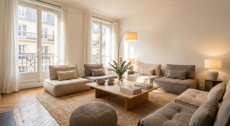 Une autre façon d’aménager le séjour s’impose peu à peu : un salon sans canapé, composé de chauffeuses, poufs et assises légères que l’on assemble ou sépare à volonté. L’idée n’est plus d’avoir une seule pièce maîtresse figée, mais un paysage qui bouge réellement avec le quotidien. Ce principe de modularité, très présent dans les rénovations récentes, change la manière de recevoir et intrigue de plus en plus de foyers.