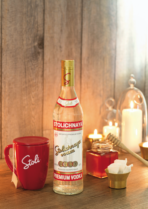 Stolichnaya continue à innover en lançant STOLI® WINTER MULE. Une recette originale et inédite aux saveurs d’hiver, proposant un mélange de vodka, de thé vert sencha gingembre-citron et d’une touche de miel. 1. Déposer le sachet de thé vertgingembre-citron.Puis l’arroser avec 12 cld’eau chaude à 80 °C.Laisser infuser 1 minute. 2. Verser 3 cl de Stolichnaya ®Premium.3. Déposer 2 cl de miel. 4. Ajouter une cuillère decassonade. 5. Compléter d’un quartier de citronvert exprimé. 6. Remuer à l’aide d’une cuillèrejusqu’à dissolution dumiel et de la cassonade.