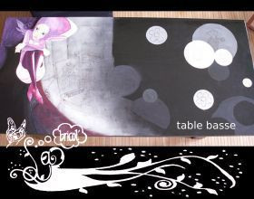 A l'origine : une table basse noire un peu abimée retrouvée dans le grenier de mes parents... Comme le mobilier est cher, on fait avec ce qu'on a...