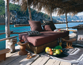 Ensemble AMPMDivan-lit : 299 euros,Tabouret : 89 euros,Housse de matelas : 29euros,House de coussin : 9 euros,Le grand plat : 55 euros.Plus d’informations : www.laredoute.fr