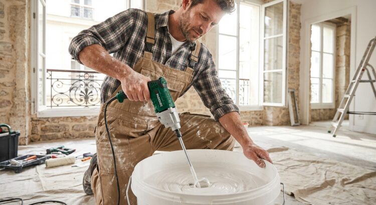 Beaucoup de bricoleurs connaissent ces avant-bras en feu après avoir tourné un bâton dans un seau de peinture trop épaisse. On ouvre le pot, les pigments restent collés au fond, le mortier fait des grumeaux, et la fatigue arrive avant même le premier coup de rouleau. Une simple préparation peut déjà gâcher la journée de travaux.
