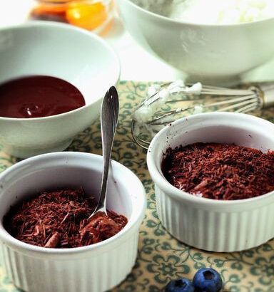 ne reste plus qu’à verser dans les ramequins et mettre au frais pendant deux