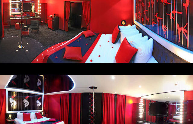Au programme ? Un grand lit moelleux placé sur un podium, une barre de pole dance pour les plus acrobates d’entre nous, un hublot pour pouvoir observer votre moitié sous la douche, ou encore un miroir au dessus du lit pour ne rien rater des mouvements de votre partenaire.