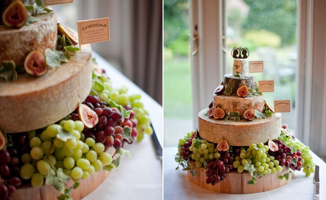 C’est en passant en revue des sites de wedding planer que j’ai découvert qu’on pouvait tout à fait se passer de la fameuse pièce montée et se laisser aller à un peu de folie gustative. Etant donné que notre thématique de mariage sera campagnarde, autant vous dire que proposer une pièce montée de fromages nous a paru l’idée du siècle !