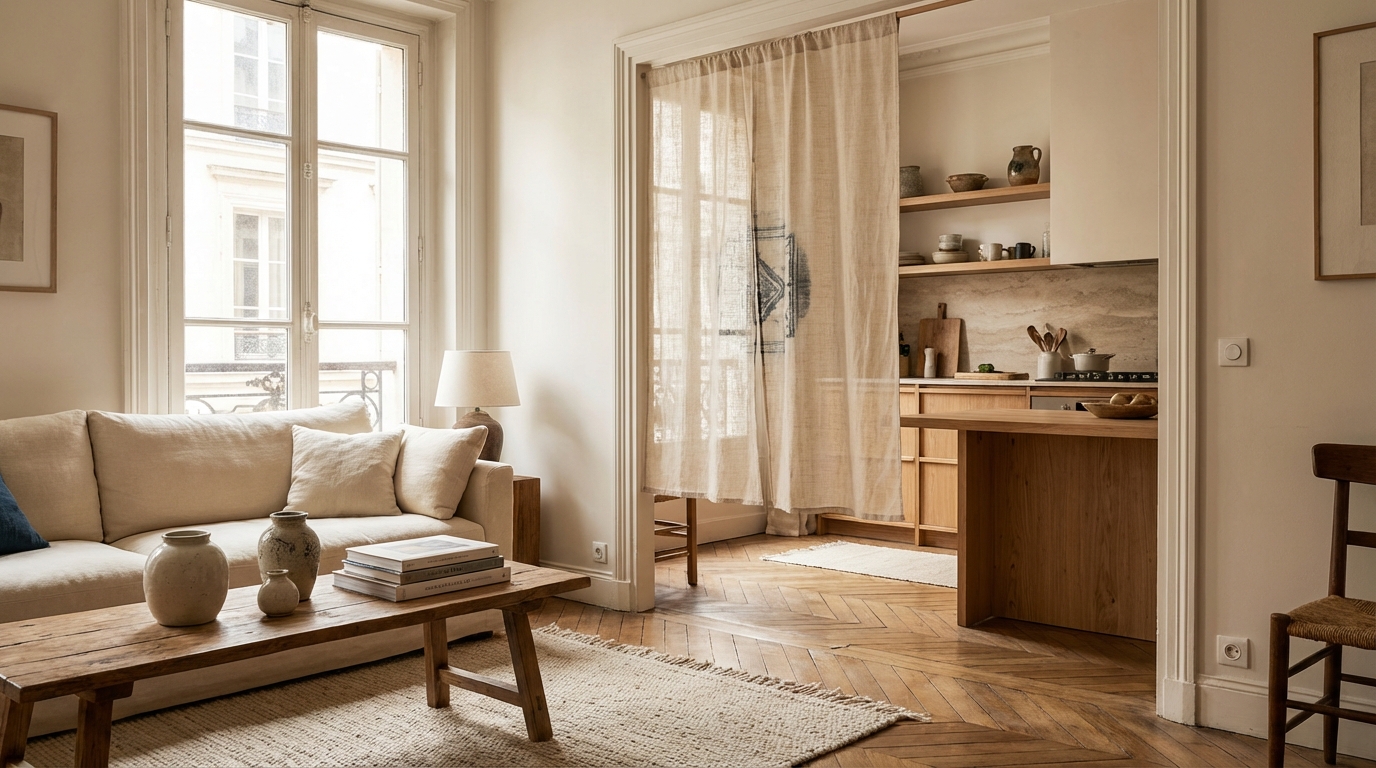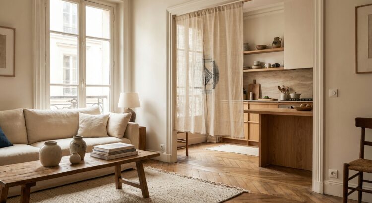 Ces dernières années, la verrière intérieure et le claustra ont été érigés en solutions miracles, mais leur prix, les travaux et leur côté définitif freinent plus d’un locataire. En coulisses, un rideau japonais longtemps cantonné aux izakaya commence pourtant à s’imposer : le noren, séparation textile souple, modulable et bien moins chère que le verre.
