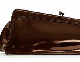 On craque pour la pochette marron en cuir verni. Idéale pour casser la monotonie du sac noir et résolument moderne !