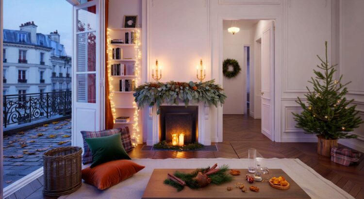 Concrètement, on voit apparaître une couronne à la porte, des guirlandes lumineuses à lumière chaude, quelques photophores sur la table basse, parfois un sapin artificiel déjà monté dans un coin. La table se met en mode pré-fêtes avec des branches de sapin, des pommes de pin, deux ou trois bougeoirs dorés. C’est un changement d’atmosphère plus qu’un décor figé.