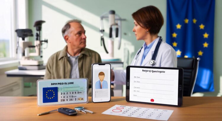 Le contrôle vise à vérifier que la conduite reste compatible avec l’état de santé. Dans de nombreux cas, un auto-questionnaire suffit. Une réponse signalant un risque oriente vers un médecin agréé. Certains pays exigeront un test de vue systématique. D’autres demanderont une attestation médicale dès le premier renouvellement.