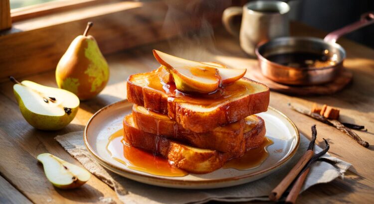 Aux premières fraîcheurs de l’automne 2025, on a envie d’un réveil chaleureux, sans passer des heures aux fourneaux. Le duo qui marche à tous les coups reste simple comme bonjour: une belle tranche de brioche un peu épaisse et des poires qui fondent doucement à la poêle. Le parfum de vanille et le sucre qui accroche à la surface font le reste.