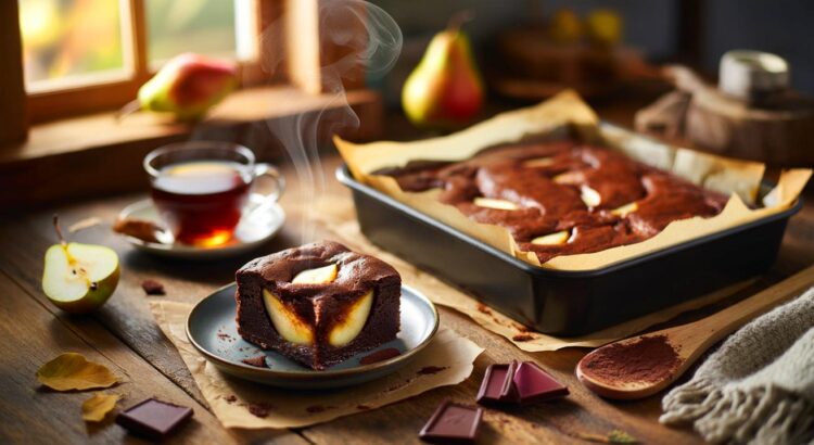 Côté présentation, servir les carrés tièdes avec de fines lamelles de poire fraîche suffit à créer un joli contraste. Une sauce chocolat chaude ou une boule de glace vanille qui fond doucement sur la tranche, et l’assiette prend des airs de café gourmand. Selon l’humeur, ajoutez un voile de noix concassées, quelques pépites, voire un filet de caramel au beurre salé pour la note finale.