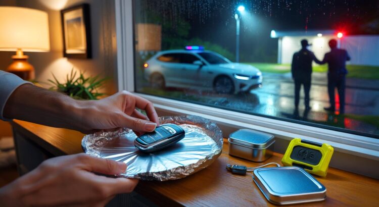 Le papier aluminium fait office de petite cage de Faraday. Il bloque l’énergie radio qui s’échappe de la clé. Une clé “murée” n’émet plus. La voiture n’entend rien. Le relais tombe à plat.