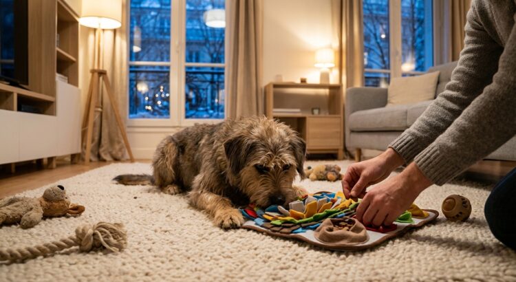 L’appartement peut se transformer en terrain d’aventures. Tapis de fouille, jeux d’intelligence, peluches à garnir de friandises, boîtes en carton à explorer, vêtement imprégné de l’odeur du maître dans le panier… ces petites attentions occupent le chien et le rassurent. Certains laissent une radio ou une playlist douce en fond, surtout en hiver où les journées sont sombres. Au retour, un rituel simple de retrouvailles – quelques mots, une friandise cachée, une balade rapide – donne du sens à son attente et renforce le lien.