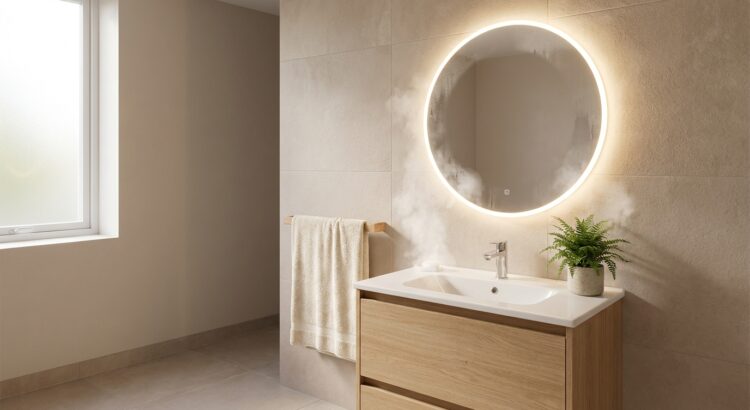 On sous-estime souvent la puissance d’un miroir dans une petite pièce d’eau. Un format généreux qui renvoie la lumière, surtout quand il est rétroéclairé, agrandit visuellement la pièce, efface les recoins sombres et met en valeur la faïence ou le meuble vasque. Dans une salle de bain sans fenêtre, un miroir salle de bain rond lumineux anti buée fait presque office de seconde ouverture.
