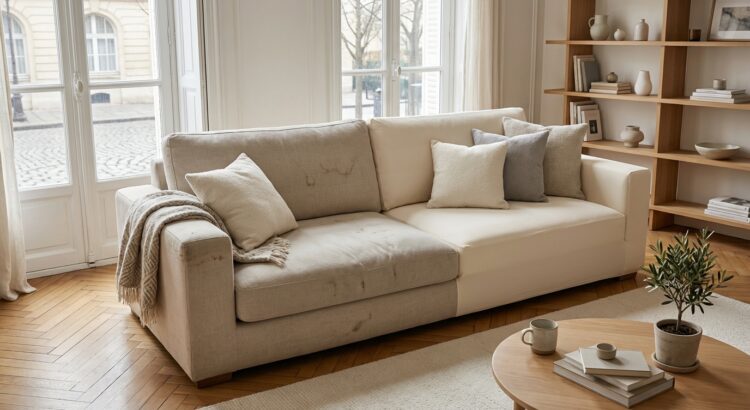 Au milieu du séjour, le canapé reste la pièce maîtresse : c’est vers lui que tous les regards se tournent. Quand le tissu est usé, décoloré par le soleil ou constellé de traces de vie, tout le décor paraît négligé, même si la table basse, les rideaux et les murs sont impeccables. Le moindre défaut se voit, et l’ambiance entière semble fatiguée.