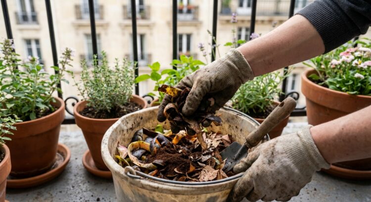 Il ne suffit pas d’entasser ces déchets. Dans un seau percé, un bac en bois ou un composteur de balcon, alternez couches d’épluchures et de marc mélangé à des feuilles. L’air doit pouvoir circuler pour que la fermentation reste aérobie. Pour un usage en terreau de semis ou de rempotage, il faut attendre un compost mûr d’au moins six mois, noir, grumeleux, à l’odeur de sous‑bois.