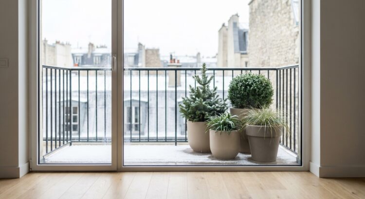 En hiver, on observe ce balcon depuis le canapé, derrière la baie vitrée. Le moindre objet posé au sol saute aux yeux et rétrécit mentalement les mètres carrés. La bonne nouvelle, c’est qu’une simple règle d’aménagement, sans budget énorme ni travaux, suffit à créer l’illusion d’un balcon deux fois plus profond. Tout se joue dans la manière de regrouper les pots…