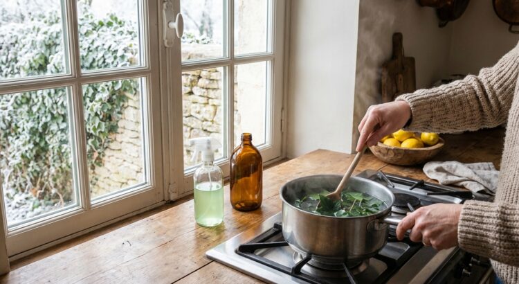 Pour agir vite sur des plantes d’intérieur infestées, une recette express suffit. Il faut environ 50 feuilles de lierre adulte, bien vert foncé, pour 1 litre d’eau : on les rince, on les cisaille ou on les froisse avec des gants, puis on fait bouillir 15 à 20 minutes. On laisse ensuite macérer 24 heures, avant de filtrer et de pulvériser sur les feuilles, dessus et dessous, tous les cinq jours jusqu’à disparition des ravageurs. Gardez ces préparations étiquetées, hors de portée, et portez des gants, car le lierre reste toxique.