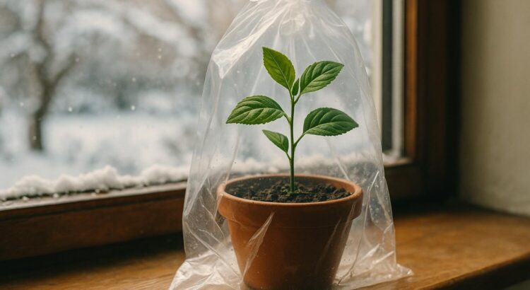 Le principe est de transformer un simple sac plastique transparent en mini-serre individuelle. Posé comme une cloche par-dessus un petit pot de terreau humide, il retient l’évaporation et crée un air chaud et saturé de vapeur. Sous ce film protecteur, la bouture reste hydratée en continu et la température grimpe légèrement. Même en décembre, la plante se comporte alors comme si elle entrait en pleine saison de croissance.