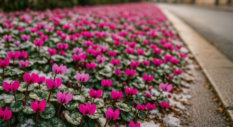 Les paysagistes qui travaillent pour des jardins de particuliers exigeants ne s’y résignent pas. Eux misent sur une petite vivace tapissante, capable de fleurir quand le thermomètre flirte avec zéro degré et que les bordures somnolent. Son nom revient souvent lors des projets haut de gamme d’hiver : le cyclamen coum, une fleur d’hiver qui ne craint ni le givre, ni parfois la neige, et qui change vraiment l’allure d’un jardin en pleine saison froide.