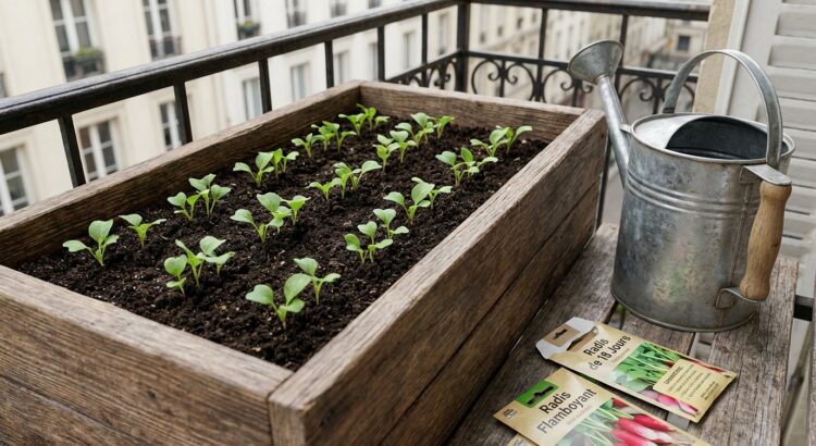 Pour démarrer dès la fin de l’hiver, le sachet malin reste le ruban de radis 18 jours Bio. On le pose sur une bande de terre ou dans une jardinière, on arrose, et c’est tout. Les premiers radis arrivent en mars si la météo reste douce. Idéal pour un balcon en ville comme pour un petit carré de jardin.