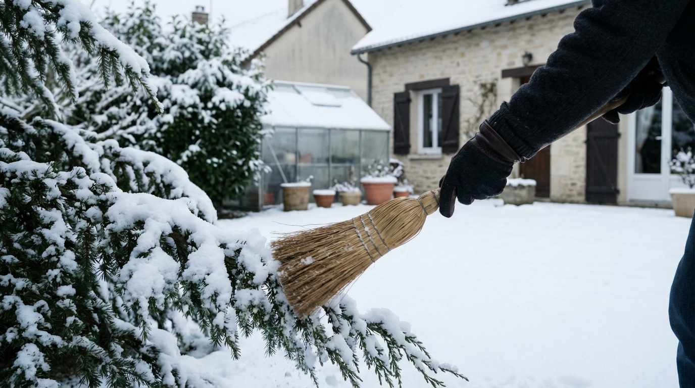 Le réflexe sauveur consiste à intervenir vite, mais avec douceur, dès que la neige s’arrête. Sur arbustes et conifères, on la fait glisser avec un balai à poils souples, de bas en haut, ou on secoue très légèrement les branches, car le bois gelé devient cassant comme du verre. On bannit donc coups de pelle et glace arrachée, on laisse fondre, puis on vérifie en passant le paillage et les structures légères du jardin, serres, pergolas ou filets.