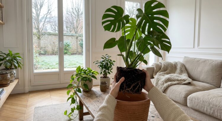 Pour les plantes d’extérieur, y compris celles rentrées pour l’hivernage, la règle reste simple : en hiver elles sont en repos végétatif, leurs racines ne cicatrisent pas et un changement de pot les met en danger. Rempotage reporté à mars ou avril, quand le sol se réchauffe. L’histoire est différente pour un Monstera ou un Ficus installé au chaud, qui ne connaît plus la dormance hivernale.