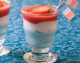 Cette recette, je l’avais déjà en tête pour la coupe de monde 1998. Les Bleus faisaient des merveilles et les 3 couleurs du drapeau français étaient bien présentes. Voici donc une délicieuse mousse au fromage blanc, délicatement parfumé au caraçao.