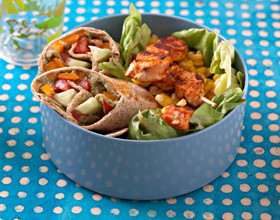 Pour les wraps végétariens :1 galette de blé (tortilla)1 avocatsel poivre piment1/4 de poivron1 tomatequelques bâtonnets de concombre50 g de maïs
