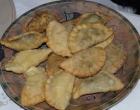 Ces petits chaussons farcis à la viande ou au fromage peuvent se manger en entrée avec une salade, mais moi, j’aime les servir en apéritif avec une petite sauce au yaourt. Petit truc : ils se congèlent très bien (cru), alors quand je me mets à en faire, je double (voir triple) les proportions !