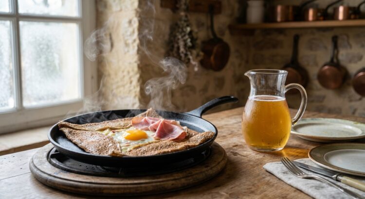 Février, la cuisine se réchauffe autour d’une galette de sarrasin croustillante, beurrée et dorée comme en Bretagne. Quels gestes transforment cette crêpe salée en plat de fête ?