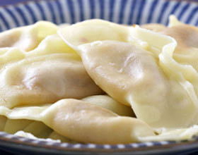 5. Repassez la pâte plusieurs fois dans la machine jusqu’à avoir une épaisseur très fine.6. Découpez des cercles de 7 cm de diamètre, à l’aide d’un cercle à pâtisserie ou d’un verre.7. Déposez une cuillérée de garniture sur la pâte et mouillez légèrement l’extrémité du cercle avec un peu d’eau.8. Repliez le cercle en deux et soudez bien les extrémités en les pinçant entre vos doigts.9. Faites de même avec le restant de la pâte et faites cuire vos raviolis 4 min dans de l’eau bouillante salée.