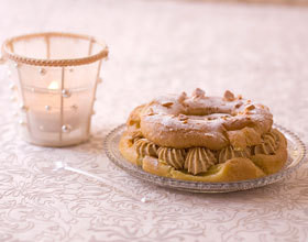 14. Remplissez une poche à douille cannelée de 8 mm de diamètre avec la crème au pralin et garnissez les Paris-Brest de crème.
