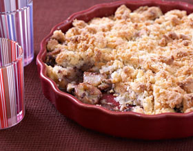 De belles poires + des morceaux de chocolat + des miettes de pâte bien croustillantes = un super dessert !