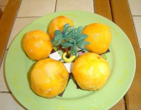 – 5 fruits (pêches et brugnons)- 1 blanc d’oeuf- du sucre- des bonbons pour la déco mais ils ne sont pas indispensables)