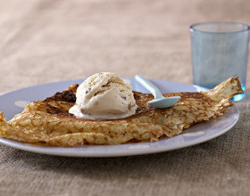 Conseil d’accompagnement : après avoir retourné la crêpe, ajoutez quelques rondelles de bananes, badigeonnez d’une cuillère de confiture de lait et laissez cuire quelques minutes. Pliez la galette bretonne et servez-la bien chaude avec une boule de glace à la vanille.