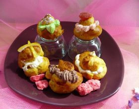 Coupez un chapeau dans les choux. Remplissez-les avec la garniture de votre choix.