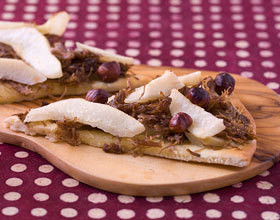 Mini pizzas au confit de canard et aux poires