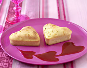 1. Dans un saladier, mélangez la farine et le sucre.2. Dans un autre saladier, battez l’oeuf avec le beurre fondu.3. Mélangez les deux préparations pour qu’elles soient homogènes.4. Ajoutez le jus de citron et le gingembre frais râpé.5. Beurrez 2 moules en forme de coeur et versez le mélange.6. Faites cuire 15 à 20 min dans le four préchauffé à 180degC.