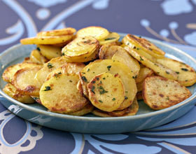1. Pelez et émincez les pommes de terre en fines rondelles. Pelez et écrasez les gousses d’ail.2. Faites chauffer l’huile dans une sauteuse. Faites-y colorer les pommes de terre sur feu vif quelques minutes.3. Puis baissez le feu et laissez cuire le tout pendant environ 15 minutes, pour qu’elles soient fondantes.4. Ajoutez les gousses d’ail, le persil, le sel et le poivre.