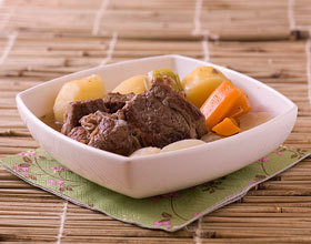 – 1,2 kg de viande de buf (joue, macreuse, paleron) – 4 poireaux- 6 carottes- 6 navets- 1 branche de céleri – 1 bouquet garni (thym, laurier) – 1 oignon- 4 clous de girofle – Grol sel