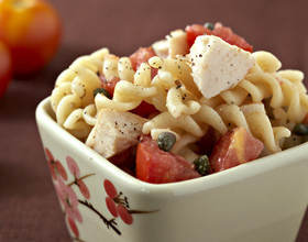 Egayez vos pauses déjeuner avec cette salade de pâtes au poulet et à la tomate.