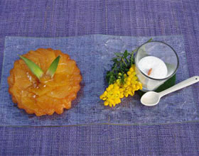 Tatin d'ananas et son émulsion à la noix de coco
