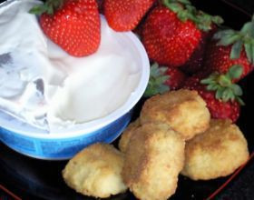 Décorez le plat avec les morceaux de biscuits et les fraises entières. Mettez au frais pendant au moins 5 heures. En fait, c’est meilleur le lendemain.