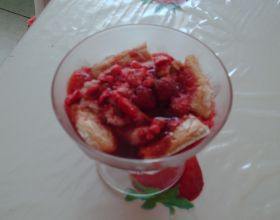 Coupez les biscuits en 2 et disposez-les dans le fond des coupes. Versez la pulpe de fraise par dessus. Ensuite, disposez 3 ou 4 framboises.