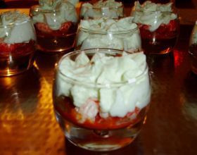 Verrines de concombre et d’écrevisses à la compotée de tomate