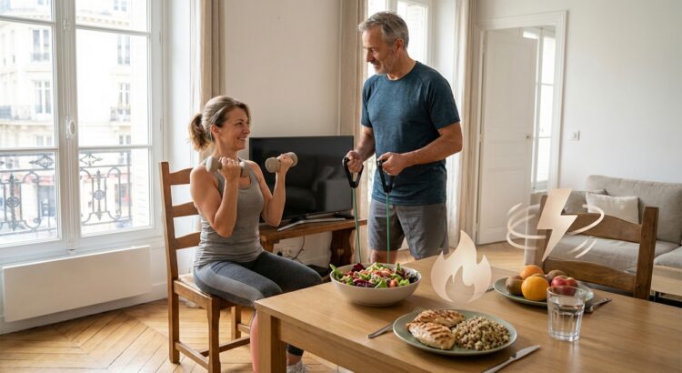 Pour booster son métabolisme après 50 ans, les études convergent vers un trio gagnant : renforcement musculaire, protéines suffisantes et sommeil réparateur. Deux à trois séances courtes de renforcement par semaine (squats avec chaise, pompes contre un mur, gainage sur les genoux) reconstruisent du muscle et remontent progressivement la dépense au repos. Un apport d’environ 1,2 à 1,6 g de protéines par kilo de poids corporel et par jour, réparti sur trois repas, fournit les “briques” nécessaires. Le sommeil, idéalement 7 à 8 heures, recadre leptine, ghréline et cortisol.