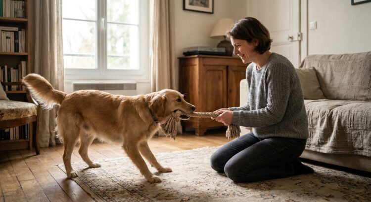 Il suffit d’une corde à nœuds et d’un chien surexcité pour lancer une partie qui fait briller les yeux des animaux comme des humains. Le tir à la corde fait partie des jeux préférés des maîtres, surtout quand le froid ou la pluie limitent les sorties, et beaucoup y voient un défi amusant pour tester la force de leur compagnon.