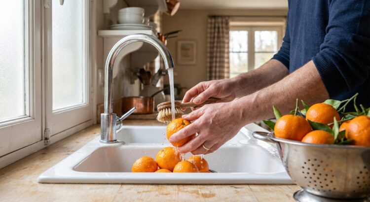 La solution reste simple : intégrer un lavage réel à la routine. Il suffit de passer chaque fruit sous un filet d’eau potable froide en le frottant, à la main ou avec une petite brosse, puis de le sécher dans un torchon propre. Ce réflexe vaut aussi pour les clémentines bio, qu’elles viennent de Corse ou de Provence, et limite au passage certains microbes. Quelques repères simples aident à garder ce geste en tête :